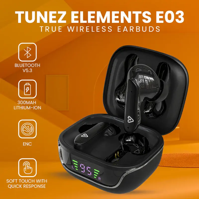 The Tunez Elements E03 True Wireless Earbuds offer a well-rounded combination of audio performance, battery life, and user-friendly features. With reliable connectivity, enhanced call clarity, and a comfortable design, they are a practical choice for everyday wireless listening.